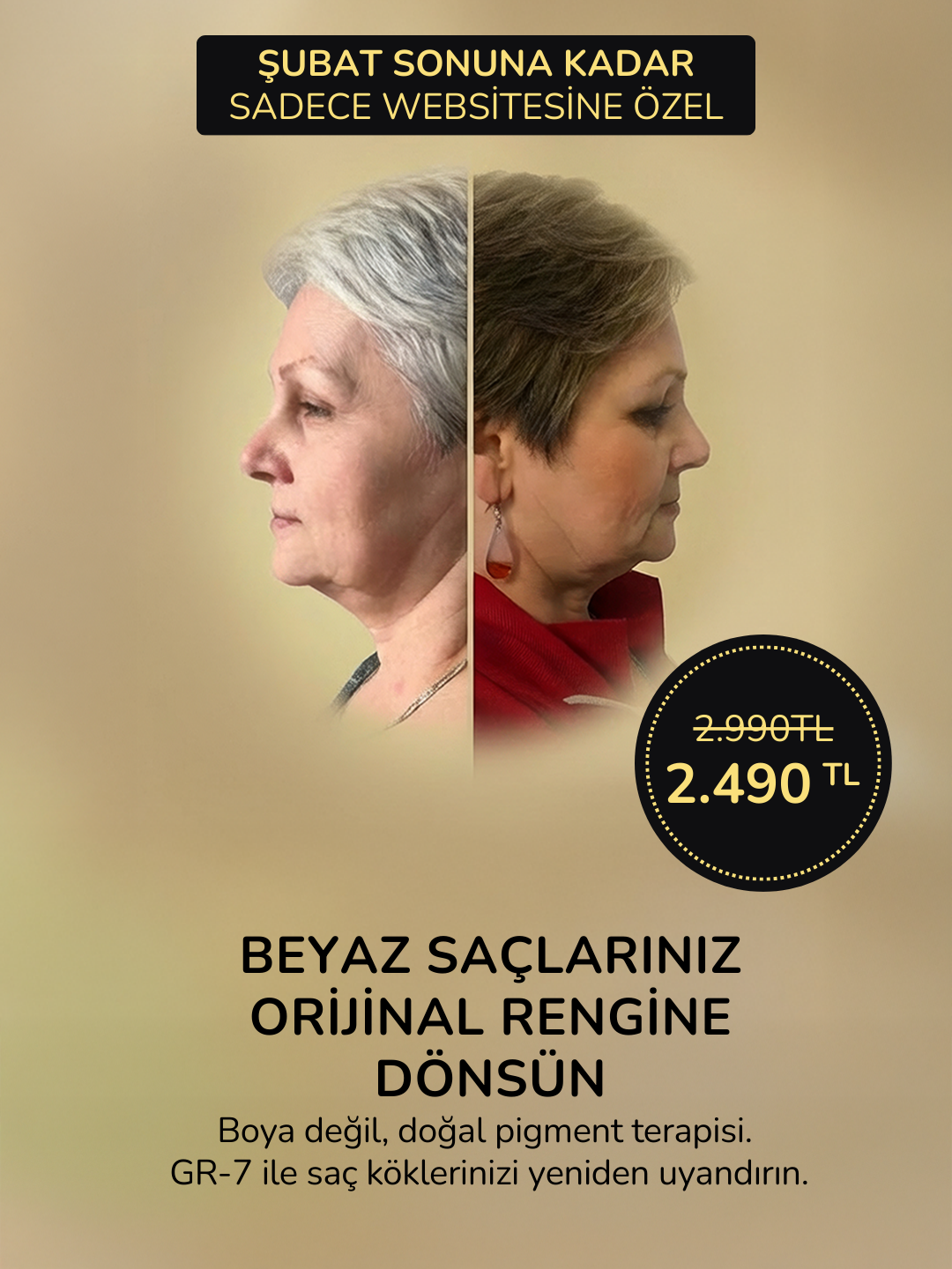 GR-7 Anti-Grey Saç Losyonu, saç boyası ya da beyaz kapatıcı değildir, sert kimyasallar içermez, her saç tipine ve rengine uygun formülüyle, saçları adım adım orijinal rengine kavuşturur, yıkanmayla akmaz ve kalıcı bir etki sağlar.